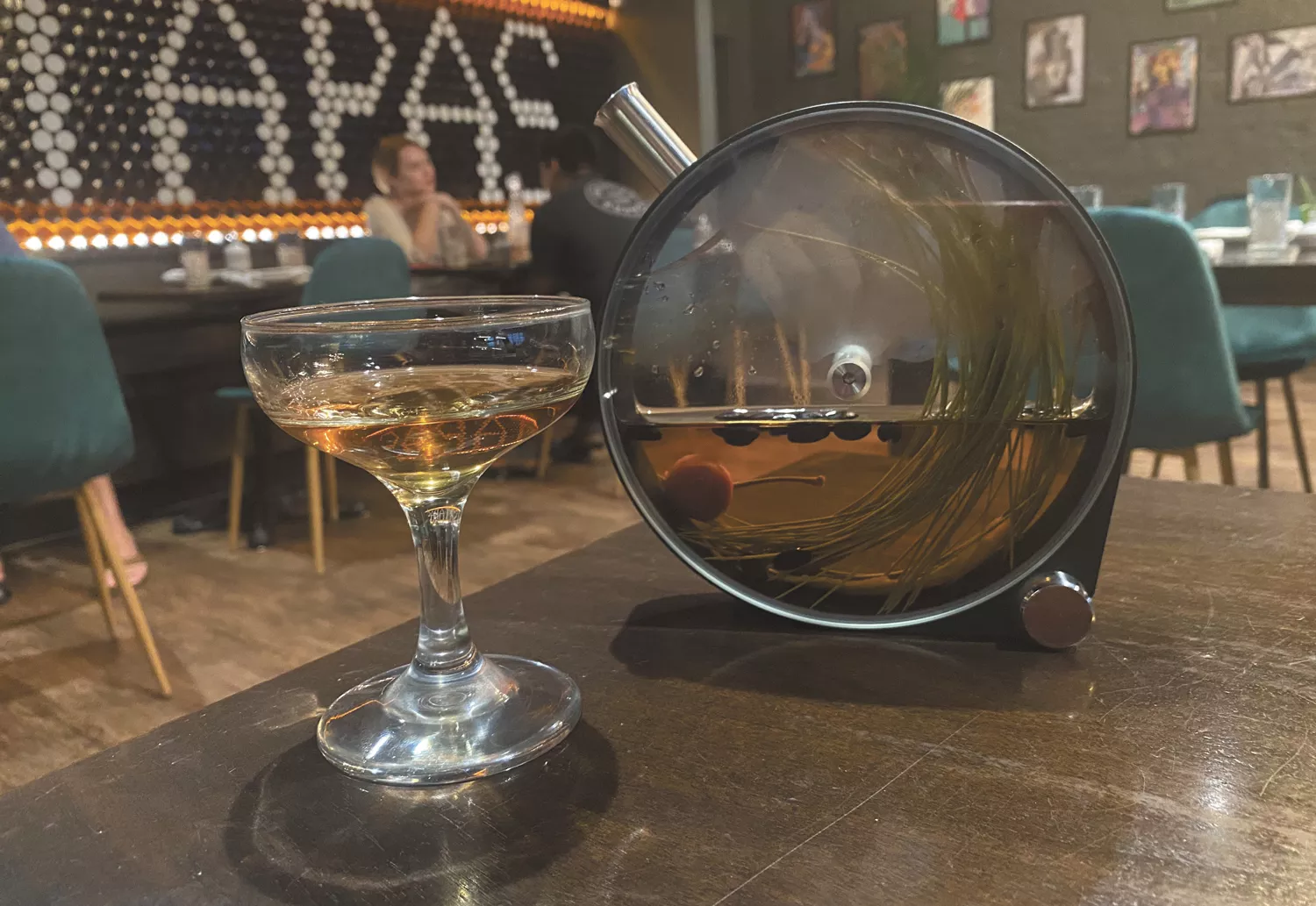 Otras bebidas especiales incluyen sangría casera por copa ($12) o jarra ($40), incluida una versión sin alcohol. Los cócteles enfatizan tanto la presentación como el paladar, como El Portal de Martinez ($16), que incluye ginebra de Mahón infundida servida en una jarra ingeniosa y una pequeña copa de martini. Las bebidas no alcohólicas adicionales incluyen una versión en español de horchata ($8) y refrescos caseros ($8).